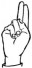 На ћирилици написано ЛАЛЕ БОГДАНОВИЋ састоји се из 14 слова [?]. Исписано ћириличном једноручном азбуком за глувонеме:
